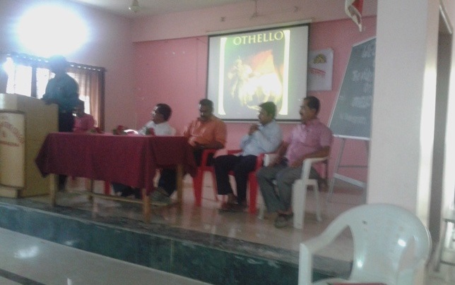 Under this M.O.U. between the English Departments of the two colleges, the Optional English students and faculties of the English department of Sharadchandra College Naigaon Bz.participated in a Shakespearian Drama Show organized by the department of English, A.C.S. College Shankarnagar in Dec.2017.In this show,the renowned Shakespearean Play,“Othello”,was broadcast on the auditoriums creen.The post-show discussion and interaction of thestudents and the faculties of English amongst each other,enhanced the understanding of “drama as a form of literary media”. The programme was organised by the English Department of A.C.S. college Shankarnagar in their college auditorium to enhance the practical sensibilities of literature among thestudents.